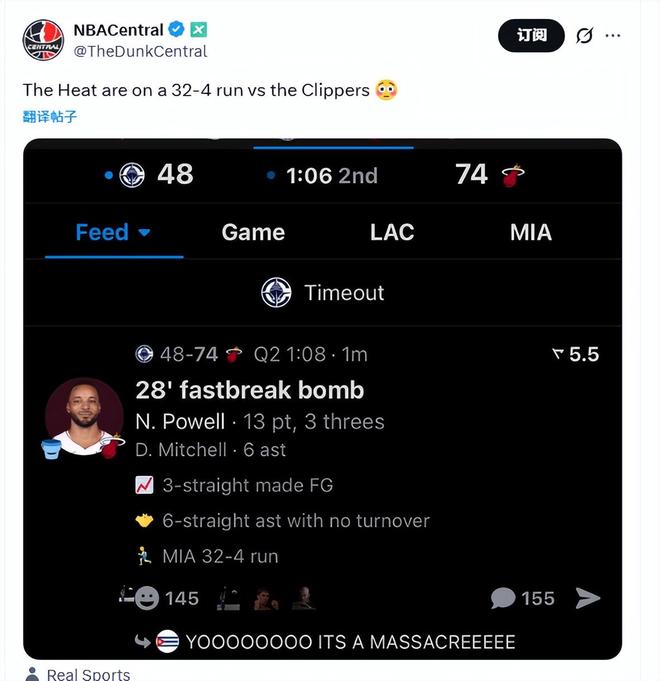 北京时间12月2日,快船和热火的比赛打完半场,快船56-76落后20分。在第二节还剩7分14秒时,快船44-42领先热火,但随后被热火打出一波32-4,最多落后26分。近15场输掉13场的快船,看上去又要崩盘了。